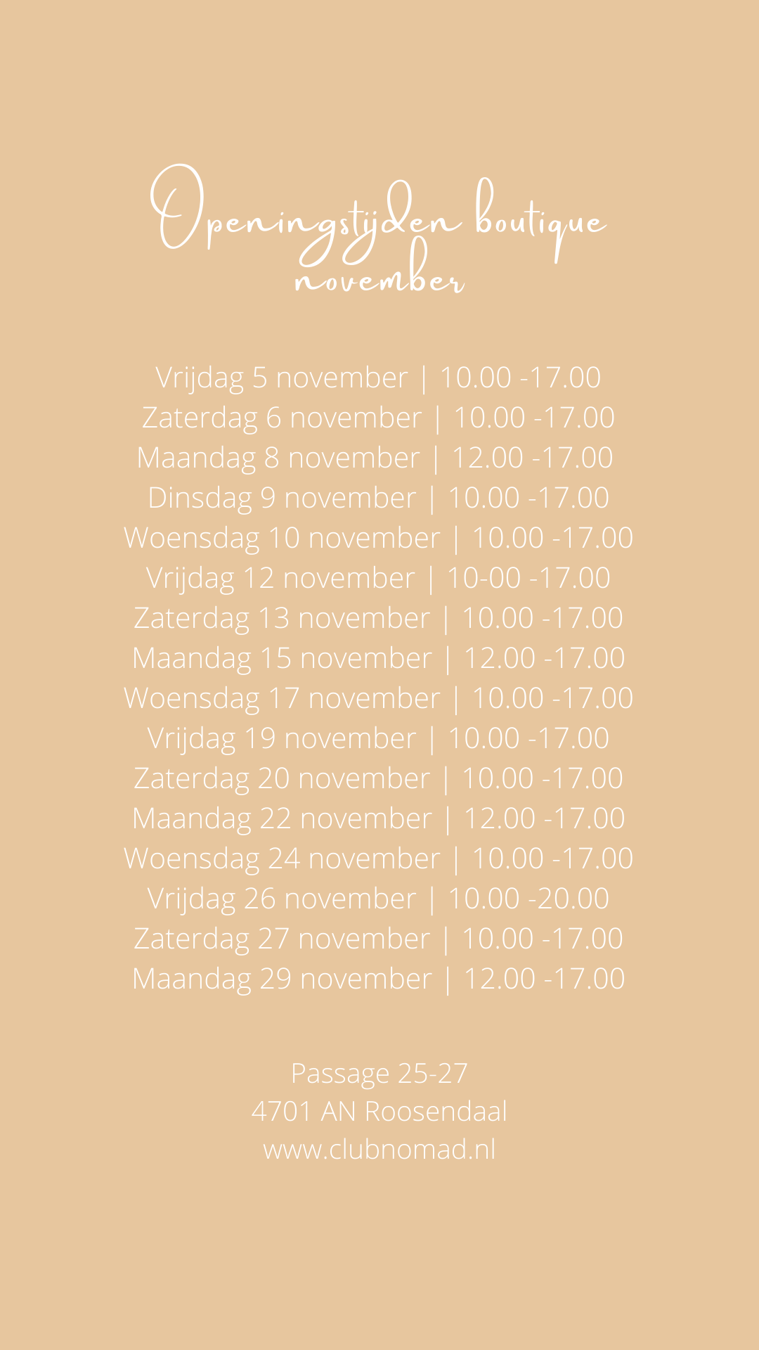 De Club Nomad Boutique is gevestigd in het unieke in Venetiaanse stijl ingerichte winkelcentrum de Passage in Roosendaal. Roosendaal is een kleine stad in het gezellige Brabant en leent zich prima voor een dagje weg! Roosendaal heeft namelijk genoeg leuks te bieden zoals Designer Outlet Roosendaal op slechts 5 minuten rijden vanaf onze boutique in de binnenstad of neem een kijkje bij de door ons genoemde hotspots die je kan terug vinden in het hoogtepunt 'Roosendaal' op ons Instagram account @clubnomad.nl