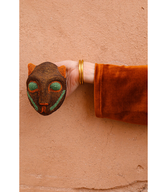 Hoe fantastisch is dit kralenhoofdje in de vorm van een panter?! Ik zag hem en was op slag verliefd! Hij is volledig met de hand gemaakt door de Bamiléké, een van de belangrijkste etnische groepen in Kameroen. Het hoofdje is gemaakt van aardewerk en versierd met glazen en/of keramische kraaltjes. Het is een waar kunstwerkje en een echte eyecatcher voor aan de muur!