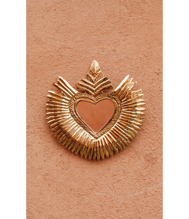 Het Milagro hart (heilig hart) staat symbool voor genezing, liefde en dankbaarheid. Het messing spiegeltje is door ambachtslieden in Marokko met de hand vervaardigd. Hang er meerdere bij elkaar of combineer met onze messing spiegels of waxinelichthouders.