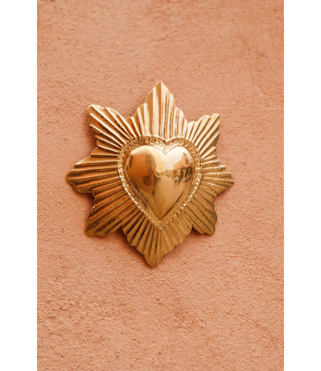 De messing wandhanger is door ambachtslieden in Marokko met de hand vervaardigd. Deze eyecatcher hangt prachtig in iedere ruimte! Het Milagro hart (heilig hart) staat symbool voor genezing, liefde en dankbaarheid.