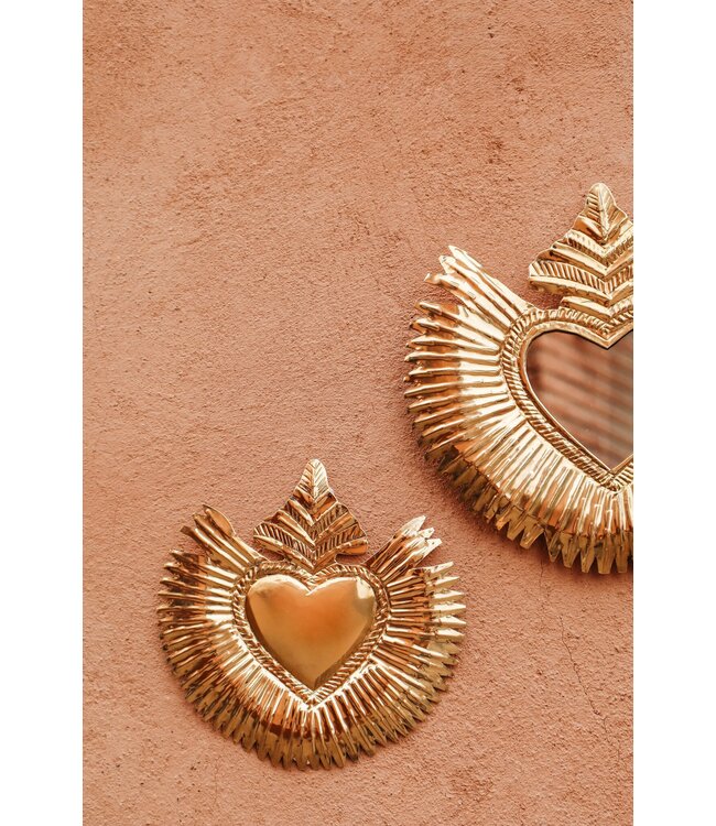 De messing wandhanger is door ambachtslieden in Marokko met de hand vervaardigd. Deze eyecatcher hangt prachtig in iedere ruimte! Het Milagro hart (heilig hart) staat symbool voor genezing, liefde en dankbaarheid.