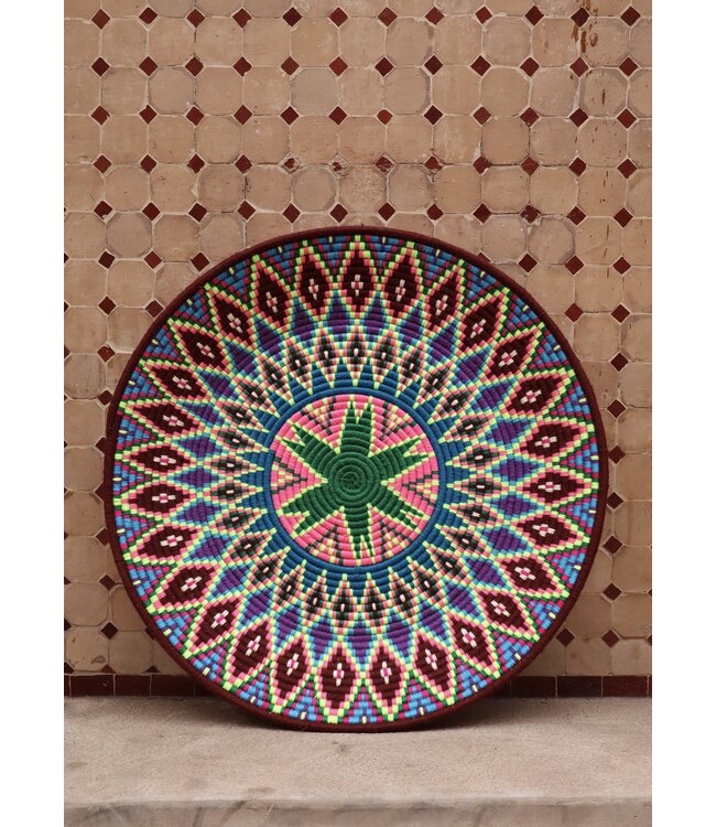 De wollen schalen zijn met de hand vervaardigd in het noorden van Marokko. Elke schaal krijgt een eigen patroon en kleur welke met wol op de schaal wordt geweven. Een eyecather voor aan de muur of gebruik ze bijvoorbeeld als fruit- of broodschaal. Van elke schaal is er slechts één stuk verkrijgbaar en is daardoor uniek in zijn soort!