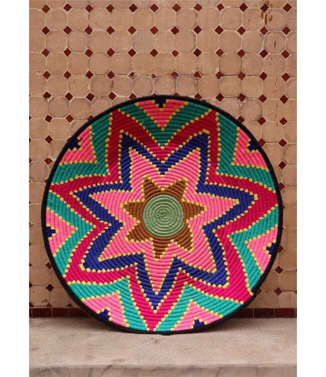 De wollen schalen zijn met de hand vervaardigd in het noorden van Marokko. Elke schaal krijgt een eigen patroon en kleur welke met wol op de schaal wordt geweven. Een eyecather voor aan de muur of gebruik ze bijvoorbeeld als fruit- of broodschaal. Van elke schaal is er slechts één stuk verkrijgbaar en is daardoor uniek in zijn soort!