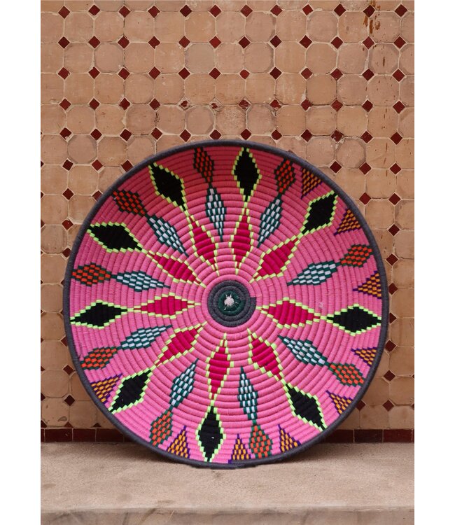 De wollen schalen zijn met de hand vervaardigd in het noorden van Marokko. Elke schaal krijgt een eigen patroon en kleur welke met wol op de schaal wordt geweven. Een eyecather voor aan de muur of gebruik ze bijvoorbeeld als fruit- of broodschaal. Van elke schaal is er slechts één stuk verkrijgbaar en is daardoor uniek in zijn soort!