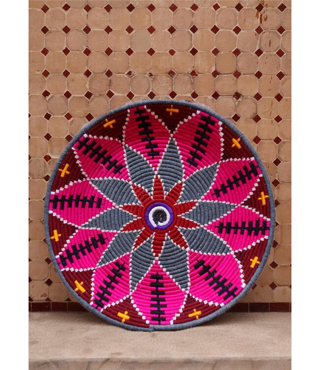 De wollen schalen zijn met de hand vervaardigd in het noorden van Marokko. Elke schaal krijgt een eigen patroon en kleur welke met wol op de schaal wordt geweven. Een eyecather voor aan de muur of gebruik ze bijvoorbeeld als fruit- of broodschaal. Van elke schaal is er slechts één stuk verkrijgbaar en is daardoor uniek in zijn soort!