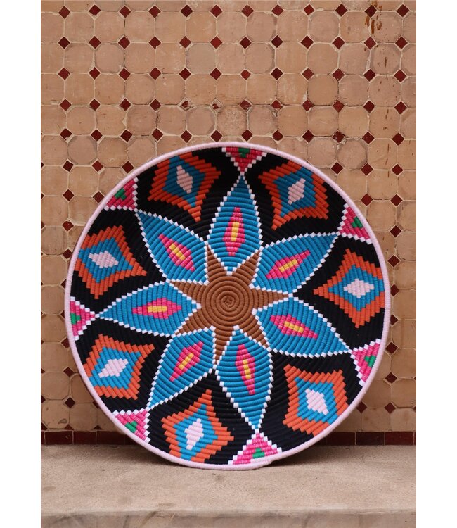 De wollen schalen zijn met de hand vervaardigd in het noorden van Marokko. Elke schaal krijgt een eigen patroon en kleur welke met wol op de schaal wordt geweven. Een eyecather voor aan de muur of gebruik ze bijvoorbeeld als fruit- of broodschaal. Van elke schaal is er slechts één stuk verkrijgbaar en is daardoor uniek in zijn soort!