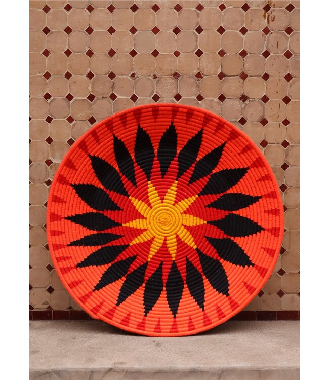 De wollen schalen zijn met de hand vervaardigd in het noorden van Marokko. Elke schaal krijgt een eigen patroon en kleur welke met wol op de schaal wordt geweven. Een eyecather voor aan de muur of gebruik ze bijvoorbeeld als fruit- of broodschaal. Van elke schaal is er slechts één stuk verkrijgbaar en is daardoor uniek in zijn soort!