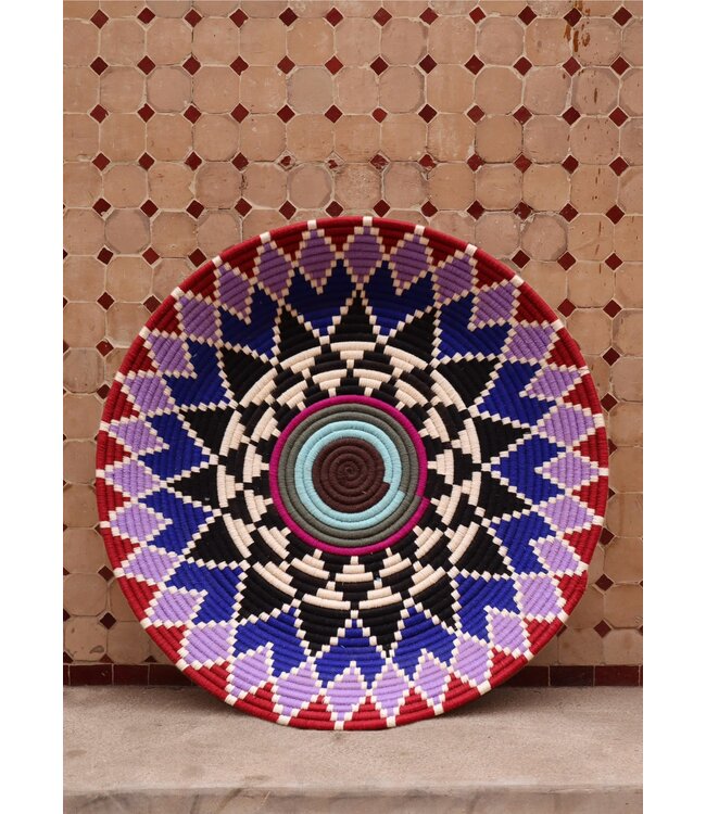 De wollen schalen zijn met de hand vervaardigd in het noorden van Marokko. Elke schaal krijgt een eigen patroon en kleur welke met wol op de schaal wordt geweven. Een eyecather voor aan de muur of gebruik ze bijvoorbeeld als fruit- of broodschaal. Van elke schaal is er slechts één stuk verkrijgbaar en is daardoor uniek in zijn soort!
