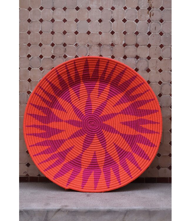 De wollen schalen zijn met de hand vervaardigd in het noorden van Marokko. Elke schaal krijgt een eigen patroon en kleur welke met wol op de schaal wordt geweven. Een eyecather voor aan de muur of gebruik ze bijvoorbeeld als fruit- of broodschaal. Van elke schaal is er slechts één stuk verkrijgbaar en is daardoor uniek in zijn soort!