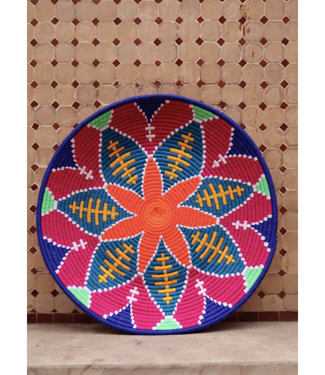 De wollen schalen zijn met de hand vervaardigd in het noorden van Marokko. Elke schaal krijgt een eigen patroon en kleur welke met wol op de schaal wordt geweven. Een eyecather voor aan de muur of gebruik ze bijvoorbeeld als fruit- of broodschaal. Van elke schaal is er slechts één stuk verkrijgbaar en is daardoor uniek in zijn soort!