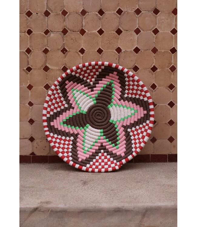 De wollen schalen zijn met de hand vervaardigd in het noorden van Marokko. Elke schaal krijgt een eigen patroon en kleur welke met wol op de schaal wordt geweven. Een eyecather voor aan de muur of gebruik ze bijvoorbeeld als fruit- of broodschaal. Van elke schaal is er slechts één stuk verkrijgbaar en is daardoor uniek in zijn soort!