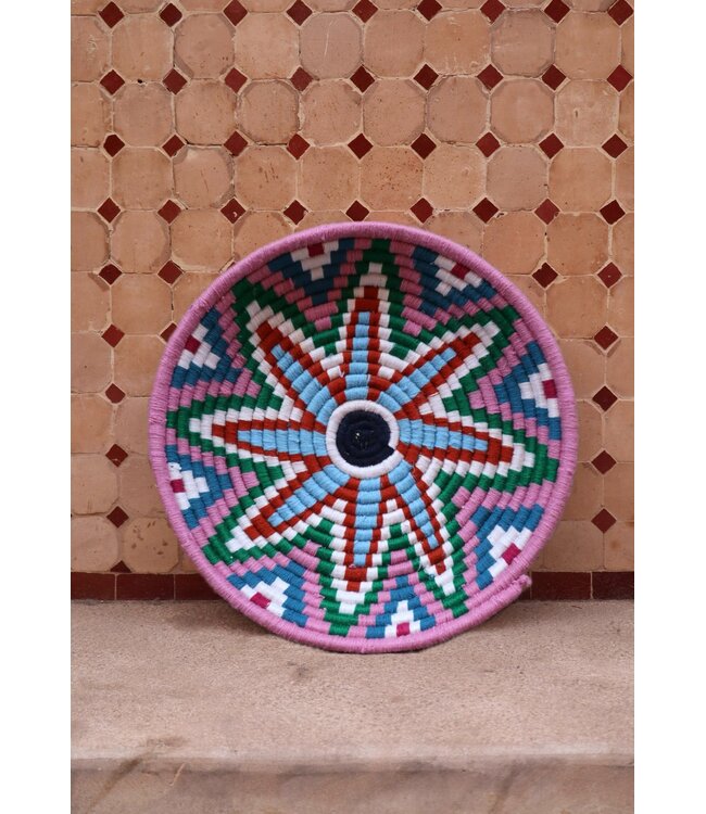 De wollen schalen zijn met de hand vervaardigd in het noorden van Marokko. Elke schaal krijgt een eigen patroon en kleur welke met wol op de schaal wordt geweven. Een eyecather voor aan de muur of gebruik ze bijvoorbeeld als fruit- of broodschaal. Van elke schaal is er slechts één stuk verkrijgbaar en is daardoor uniek in zijn soort!