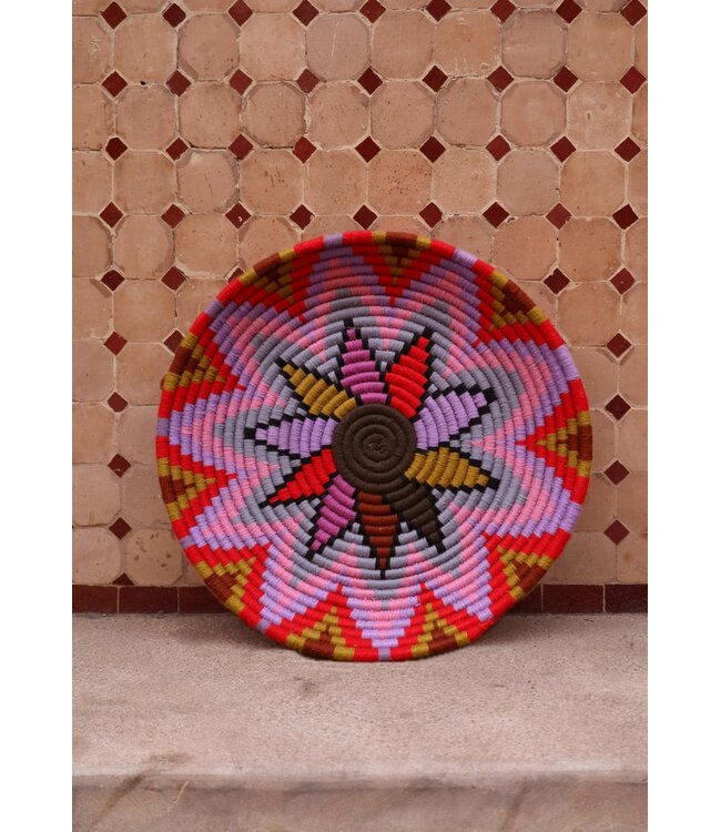 De wollen schalen zijn met de hand vervaardigd in het noorden van Marokko. Elke schaal krijgt een eigen patroon en kleur welke met wol op de schaal wordt geweven. Een eyecather voor aan de muur of gebruik ze bijvoorbeeld als fruit- of broodschaal. Van elke schaal is er slechts één stuk verkrijgbaar en is daardoor uniek in zijn soort!
