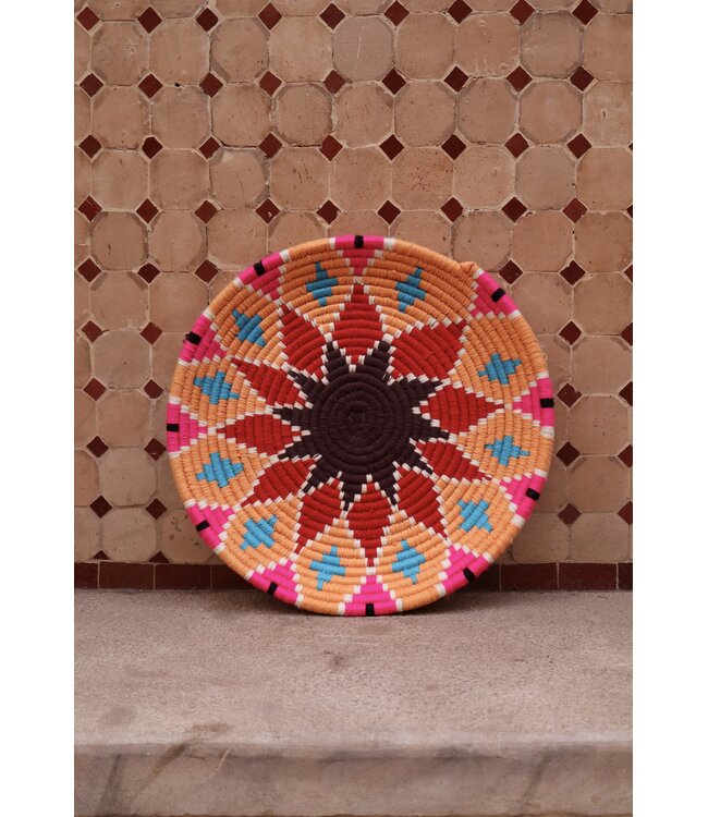 De wollen schalen zijn met de hand vervaardigd in het noorden van Marokko. Elke schaal krijgt een eigen patroon en kleur welke met wol op de schaal wordt geweven. Een eyecather voor aan de muur of gebruik ze bijvoorbeeld als fruit- of broodschaal. Van elke schaal is er slechts één stuk verkrijgbaar en is daardoor uniek in zijn soort!