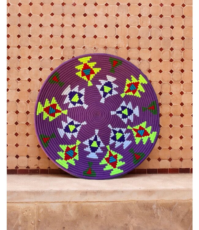 De wollen schalen zijn volledig met de hand gemaakt in het noorden van Marokko. Ze krijgen hun eigen patroon en kleur welke handmatig met wol op de onderzetter wordt geweven. Van elke schaal is er slechts één stuk verkrijgbaar en is daardoor uniek in zijn soort!