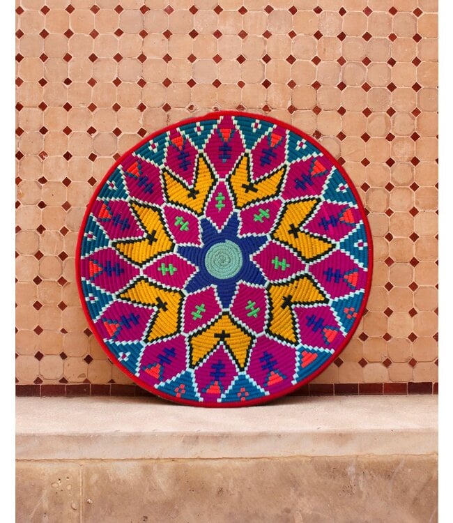 De wollen schalen zijn volledig met de hand gemaakt in het noorden van Marokko. Ze krijgen hun eigen patroon en kleur welke handmatig met wol op de onderzetter wordt geweven. Van elke schaal is er slechts één stuk verkrijgbaar en is daardoor uniek in zijn soort!